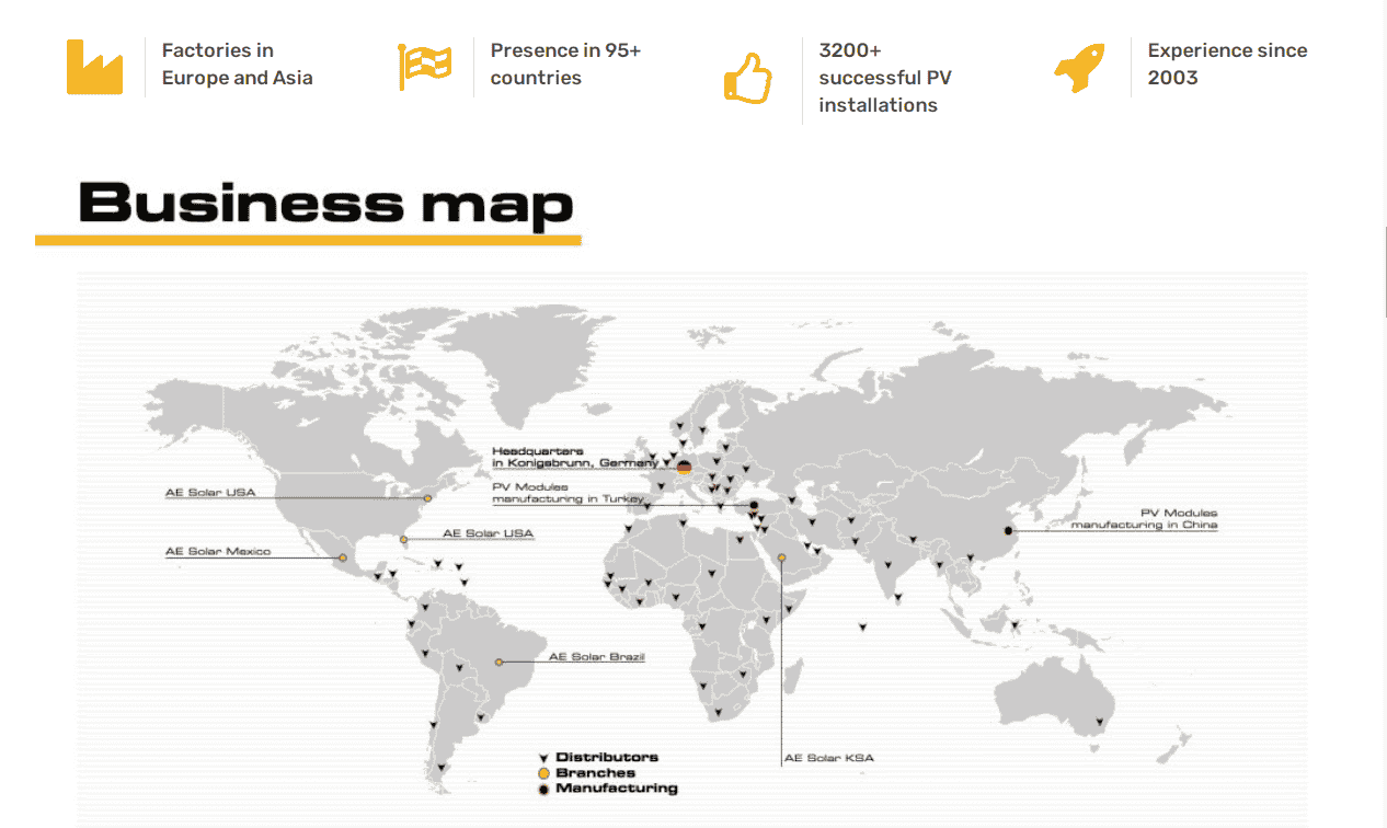 AE Solar TIER1 Company was founded by Dr. Alexander Maier and his brothers in Königsbrunn, Germany. AE Solar is one of the award-winning leading brands in the renewable energy industry, providing high-quality new renewable energy products and services since 2003.
