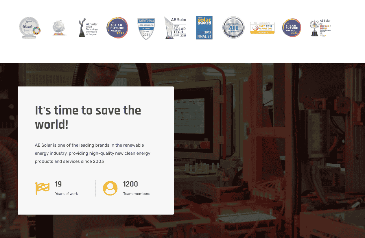 The company is a key component supplier and project developer. AE Solar’s global sales and marketing network successfully provides end-users with accessible clean energy, whilst promoting its core brand values of stability, durability, and reliability.