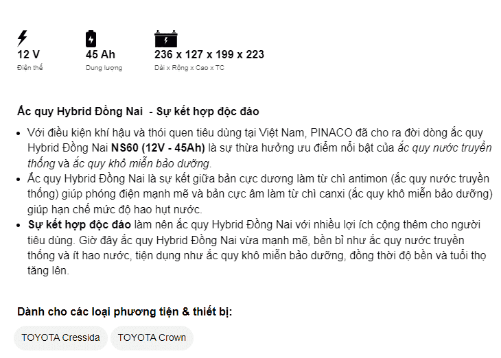 Ắc quy Đồng Nai nước 12V-45Ah (NS60)