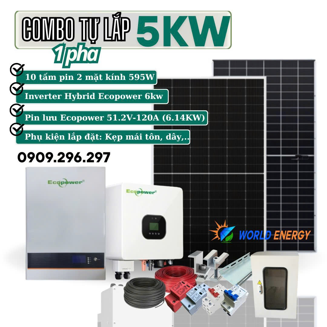 - Bộ biến tần lưu trữ (Hybrid) Ecopower 8KW: 1 bộ