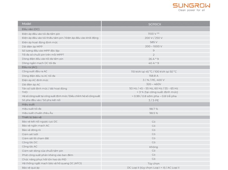 INVERTER HÒA LƯỚI 110KW 3 PHA SOLIS 5G